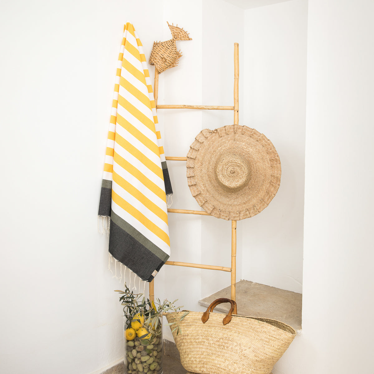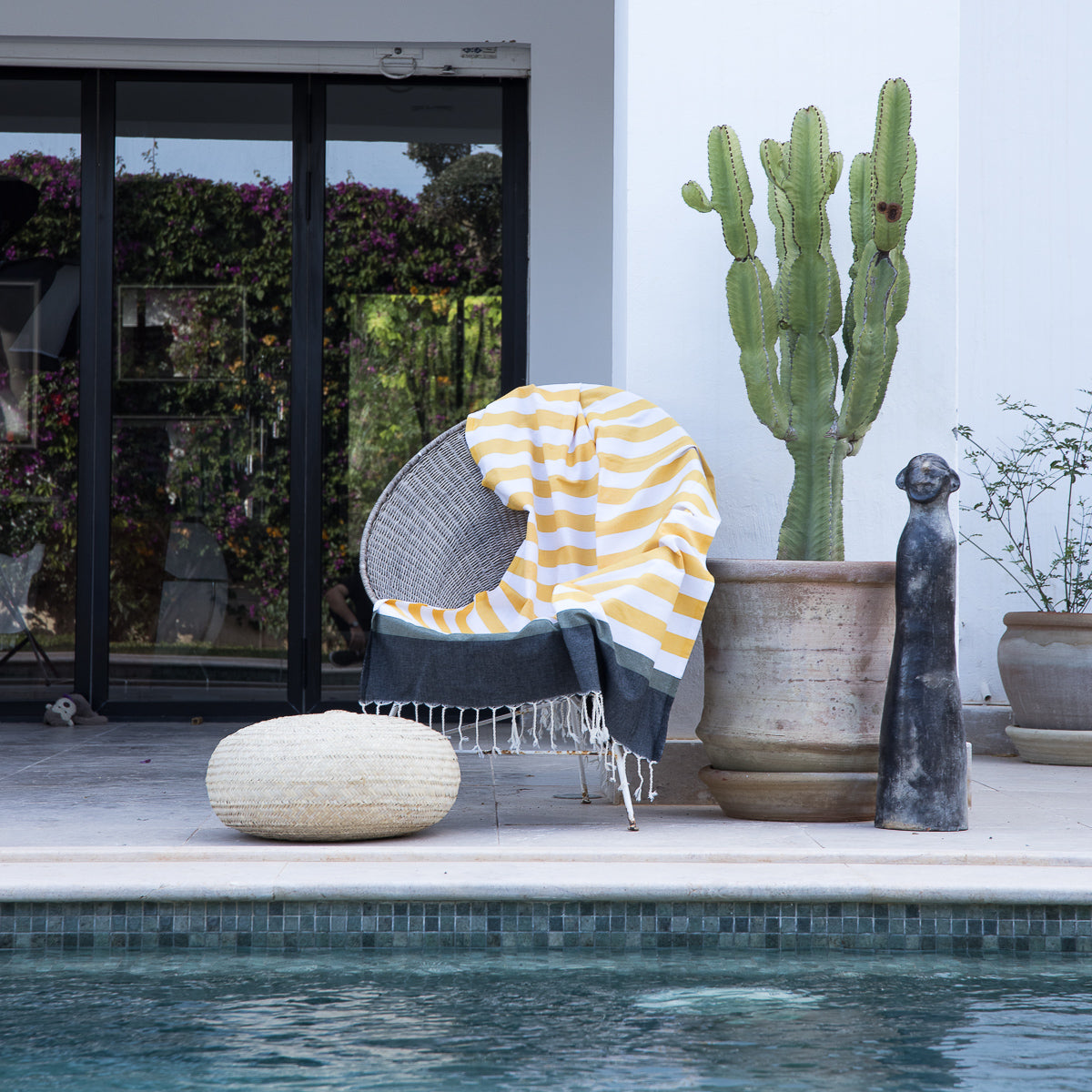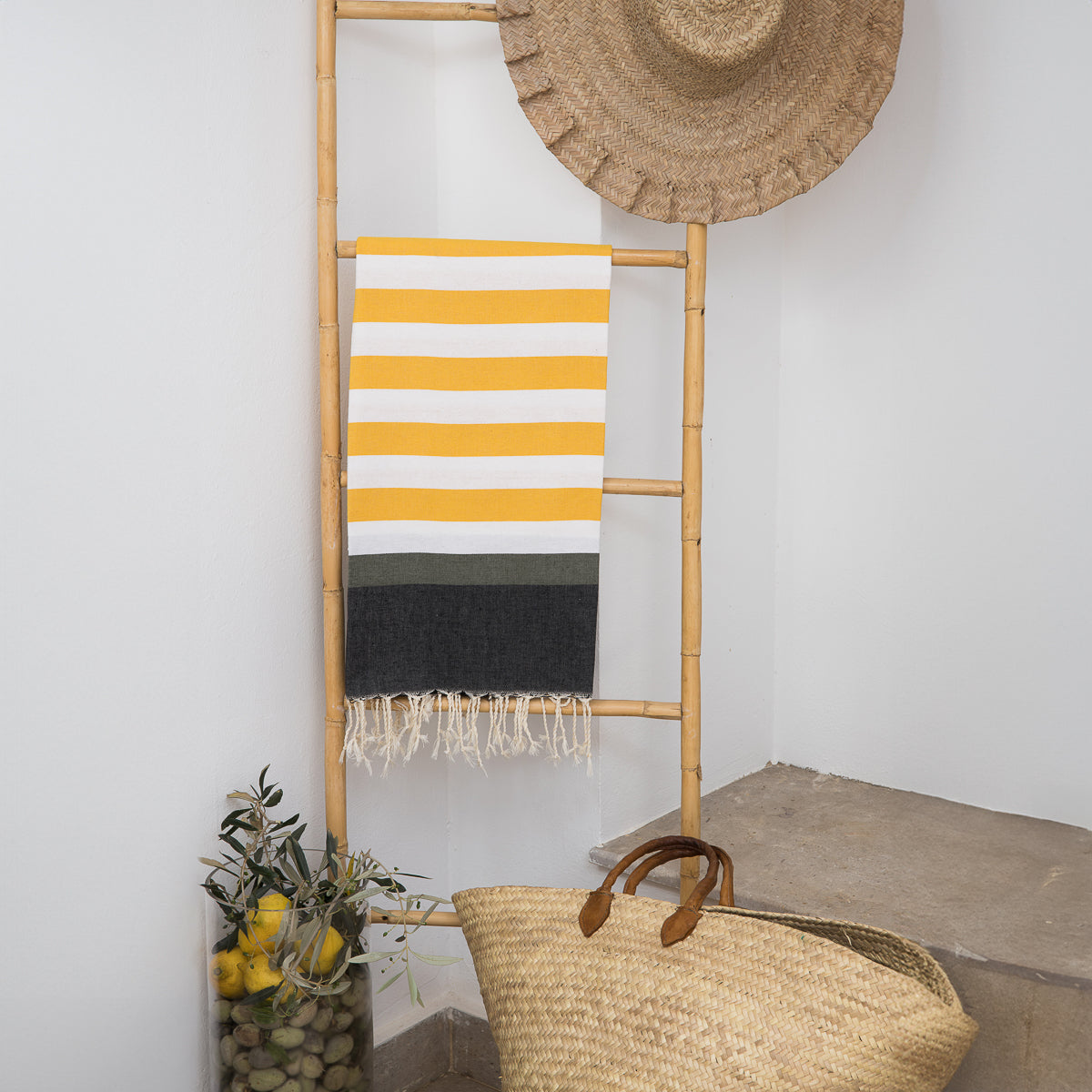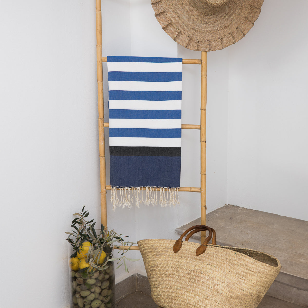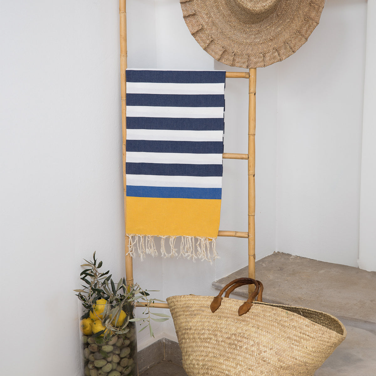 The ARCACHON tricolor cotton fouta, the ideal companion for your beach trips, its bright colors will blend perfectly with the decor of a seaside villa.