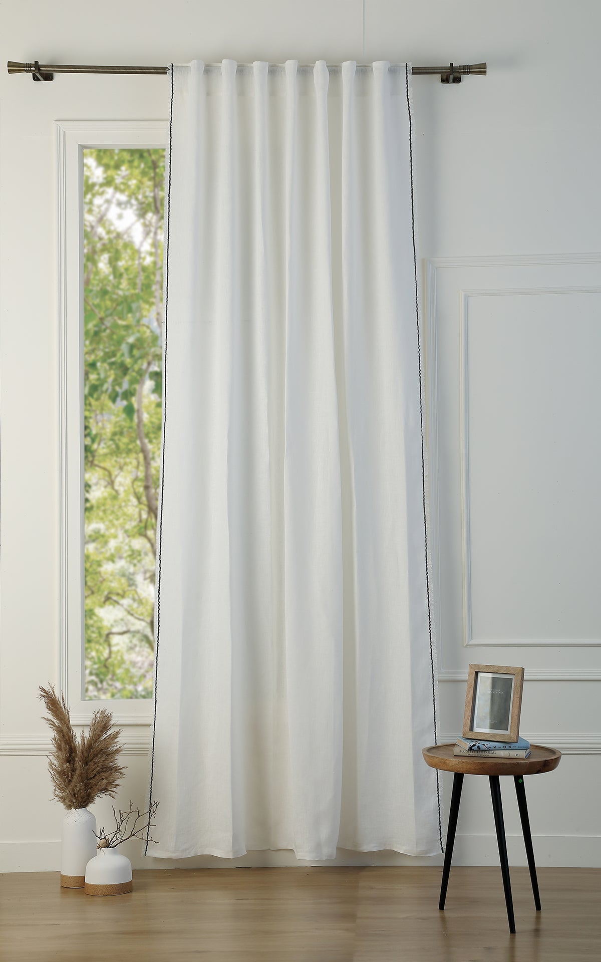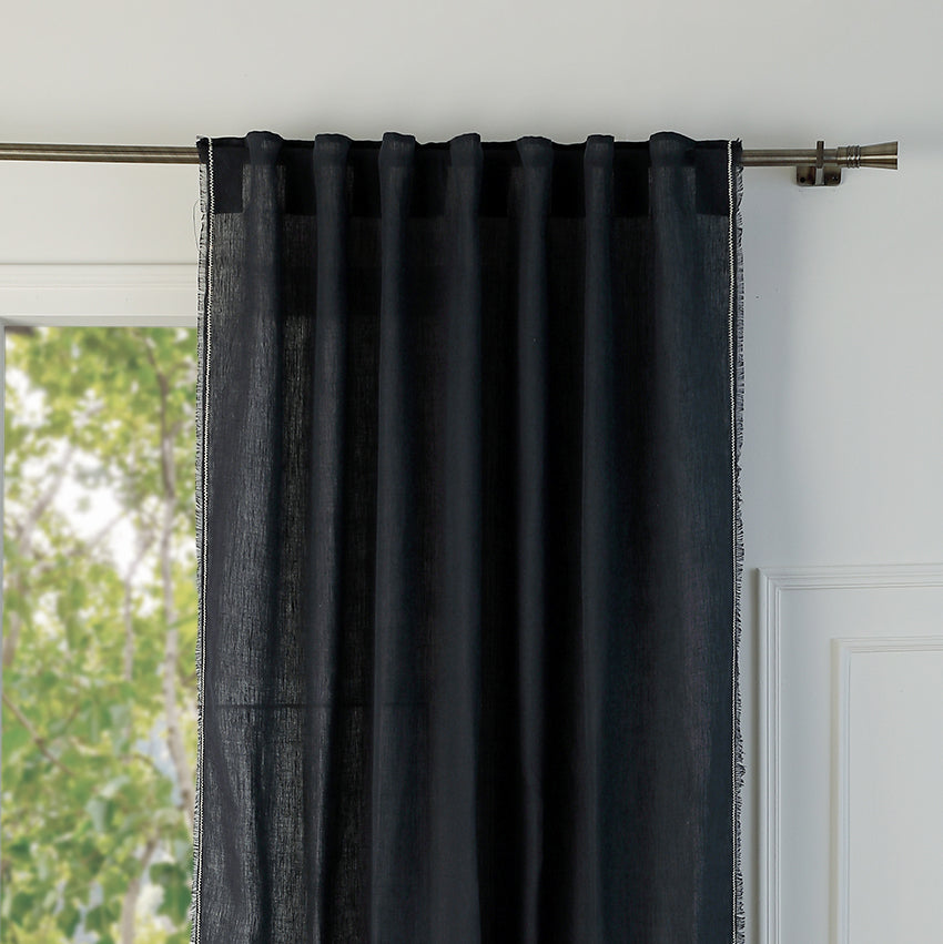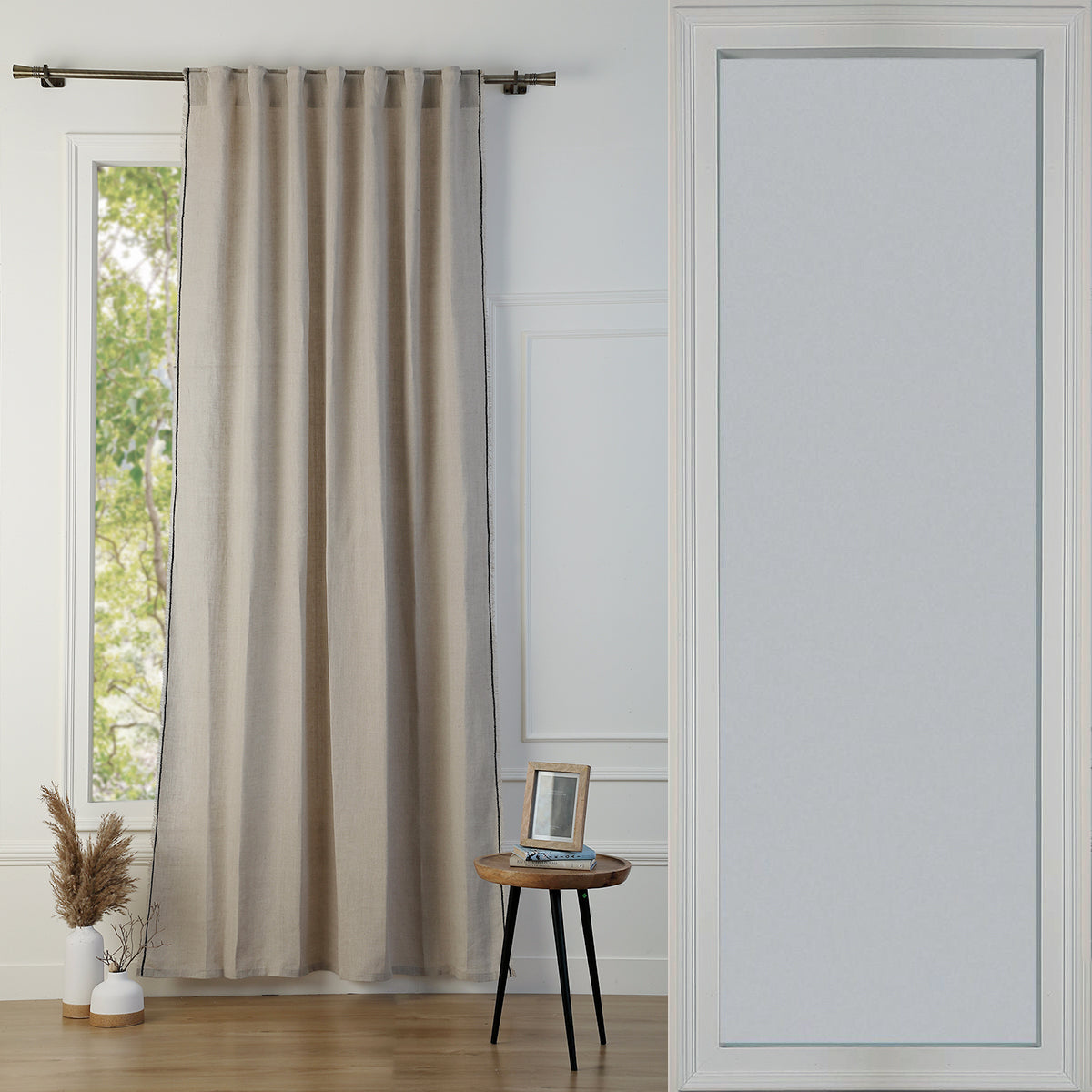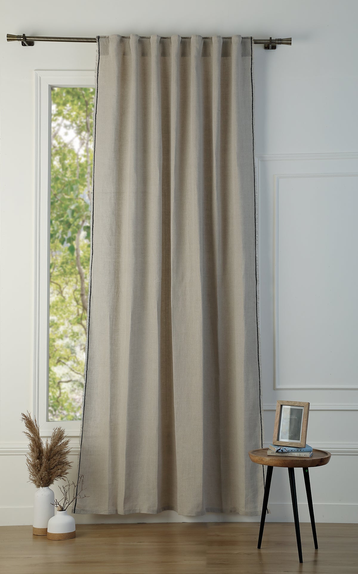 Our GABRIEL washed linen tab-top curtain is perfect for adding a touch of elegance and comfort to your home. Made from high-quality linen, this curtain is soft to the touch, lightweight, and breathable. Its slightly crinkled texture offers a relaxed and trendy look, while creating a warm and welcoming ambiance in your room.