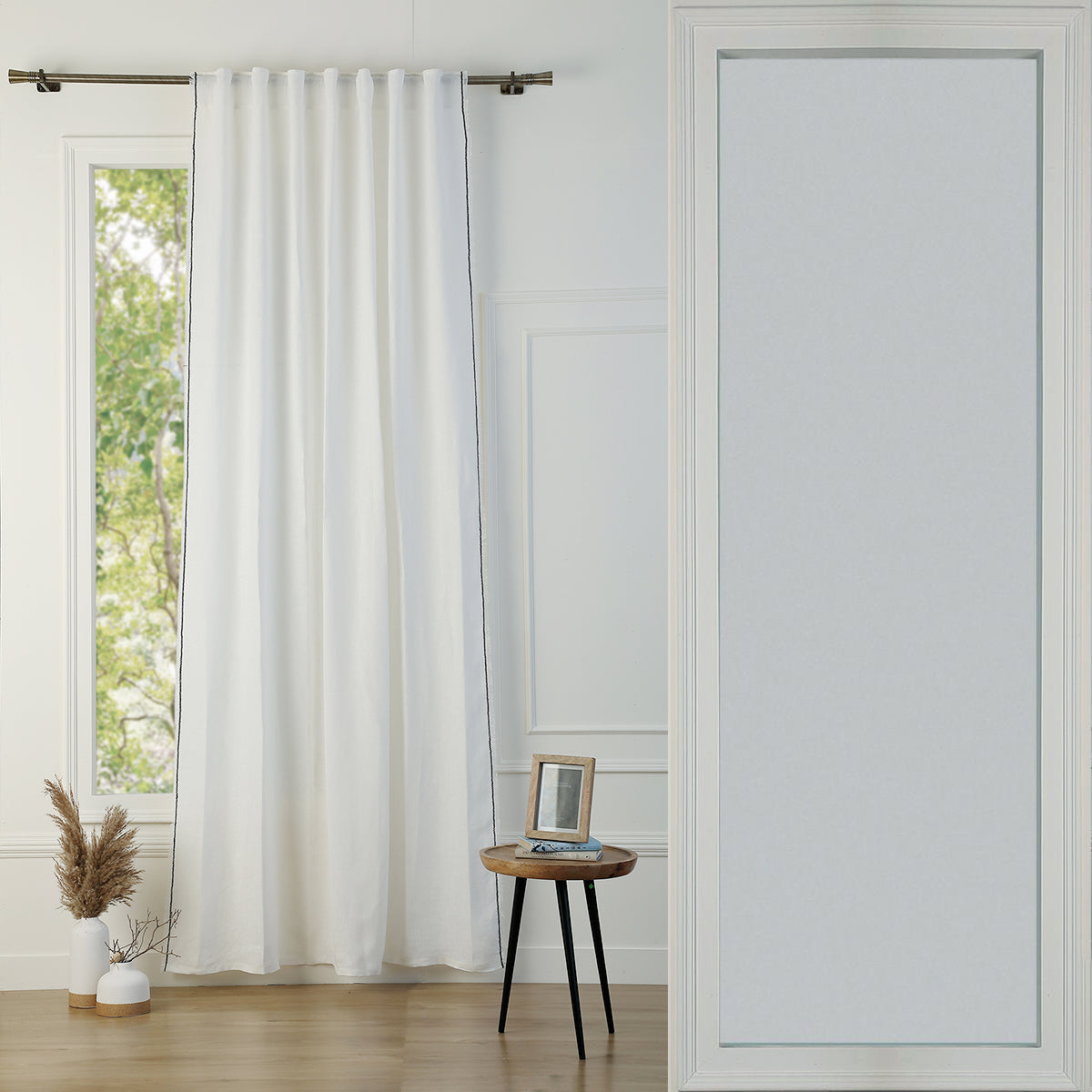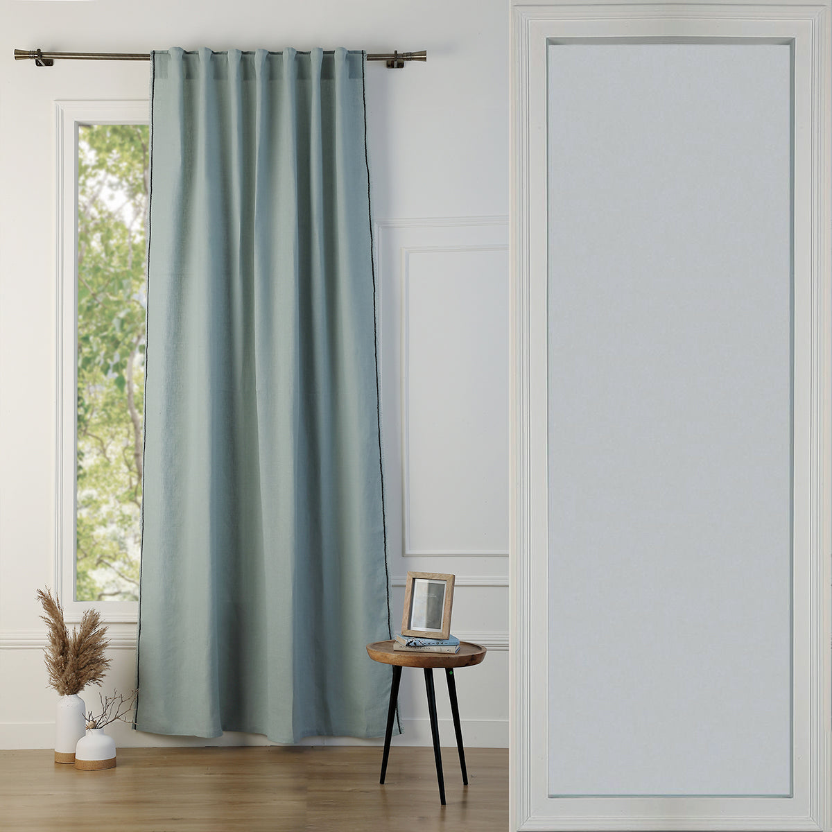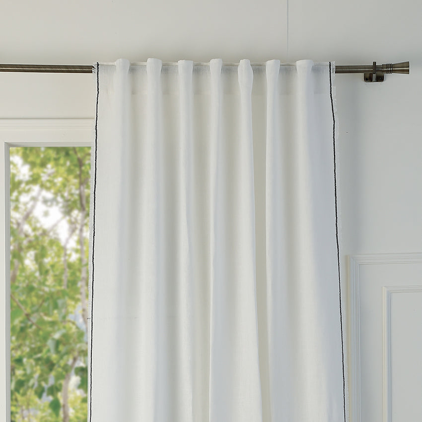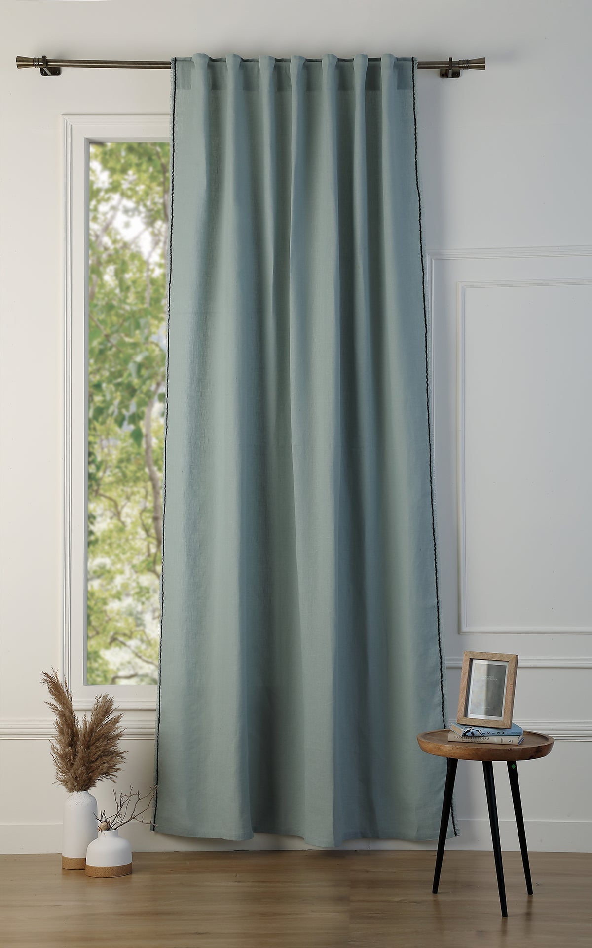 Our GABRIEL washed linen tab-top curtain is perfect for adding a touch of elegance and comfort to your home. Made from high-quality linen, this curtain is soft to the touch, lightweight, and breathable. Its slightly crinkled texture offers a relaxed and trendy look, while creating a warm and welcoming ambiance in your room.