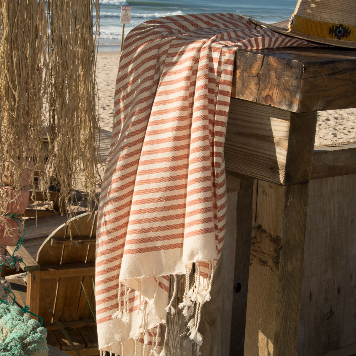 La fouta di cotone HOSSEGOR, elegante in casa e in mare, è leggero e piacevolmente morbido, vi conquisterà con il suo stile unico e le sue righe colorate.