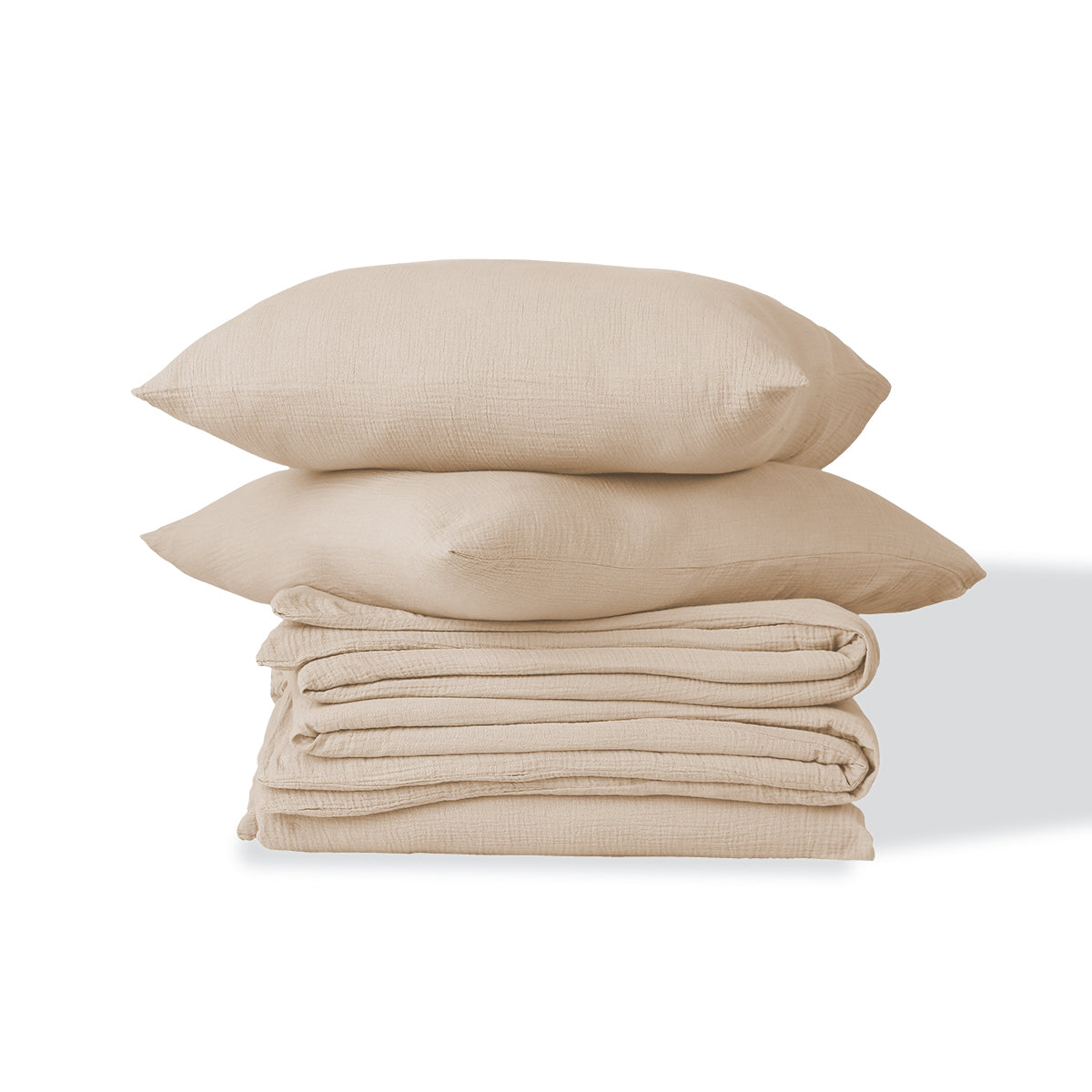 La collezione CARLA in garza di cotone si distingue per la sua morbidezza e il comfort eccezionale. Naturalmente termoregolatrice, la garza di cotone mantiene una temperatura ideale, perfetta in tutte le stagioni. Si ammorbidisce ad ogni lavaggio, accrescendo il suo fascino unico. Estremamente morbido, è ideale per le pelli sensibili. La doppia garza di cotone unisce densità e leggerezza e non necessita di stiratura.