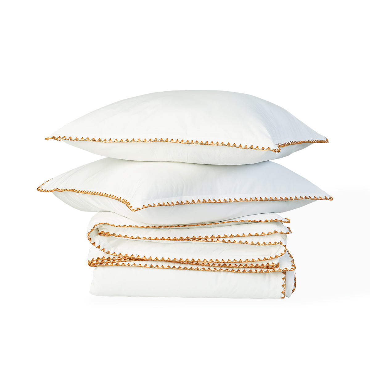 Set da letto in percalle di cotone bianco / caramello ZOÉ