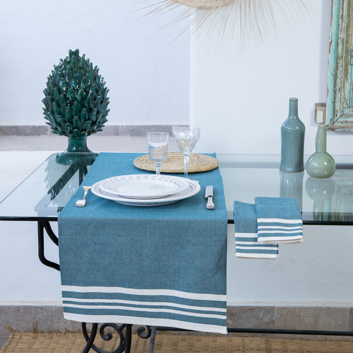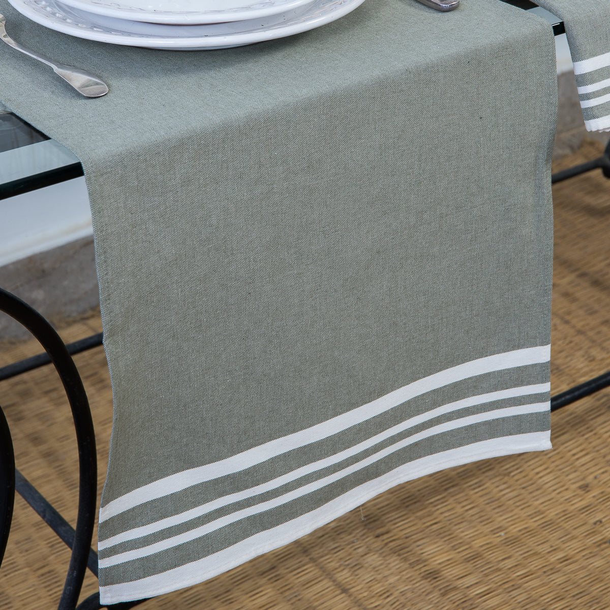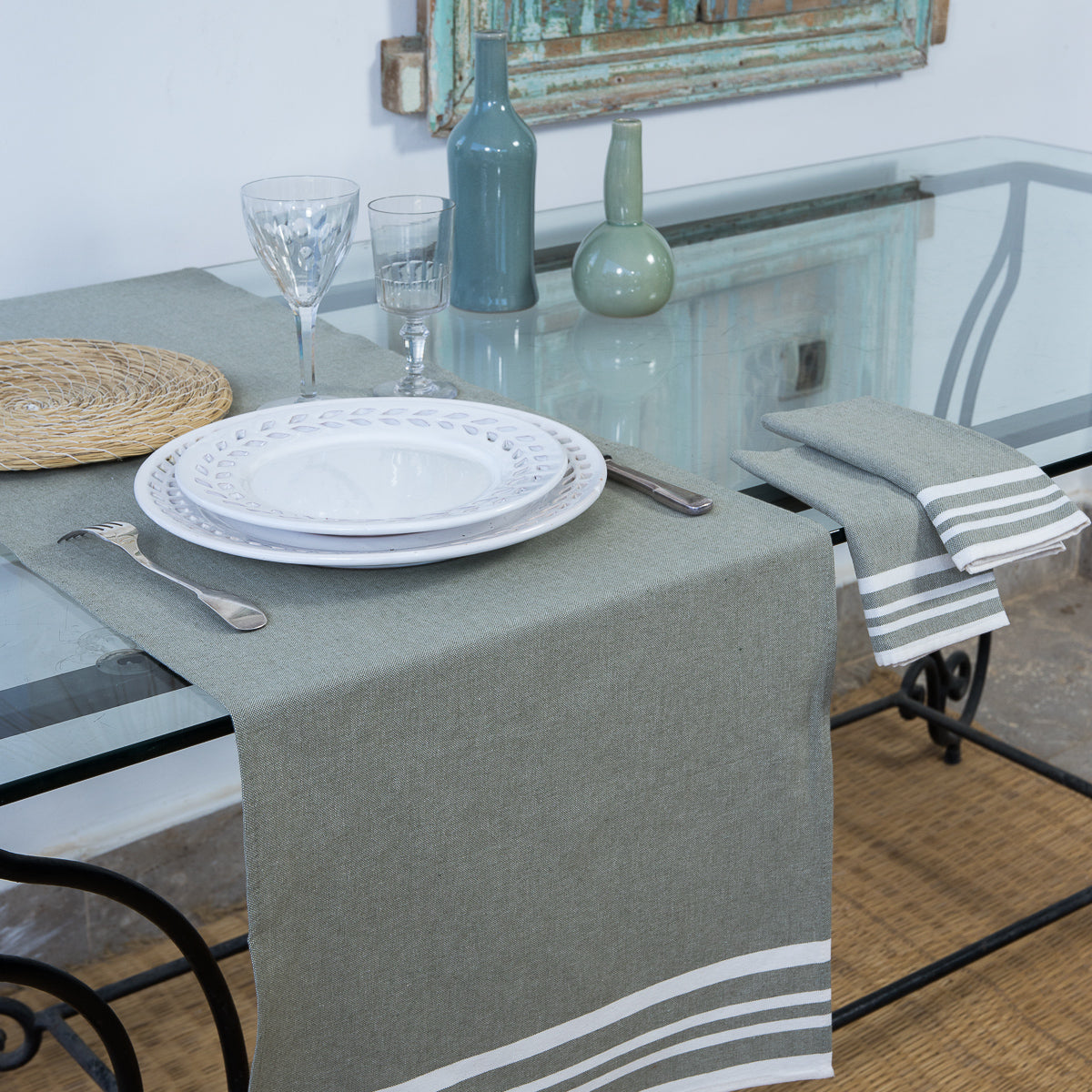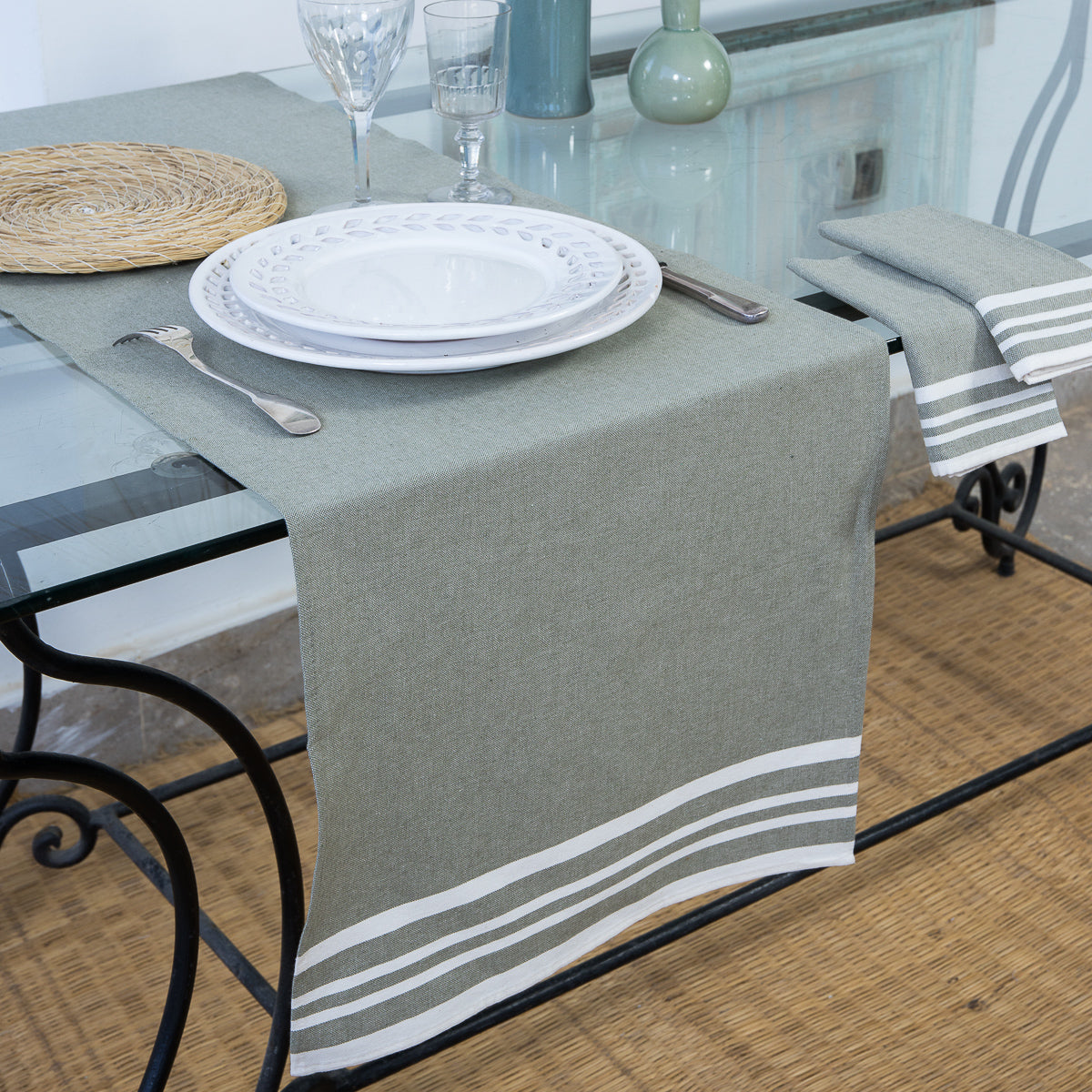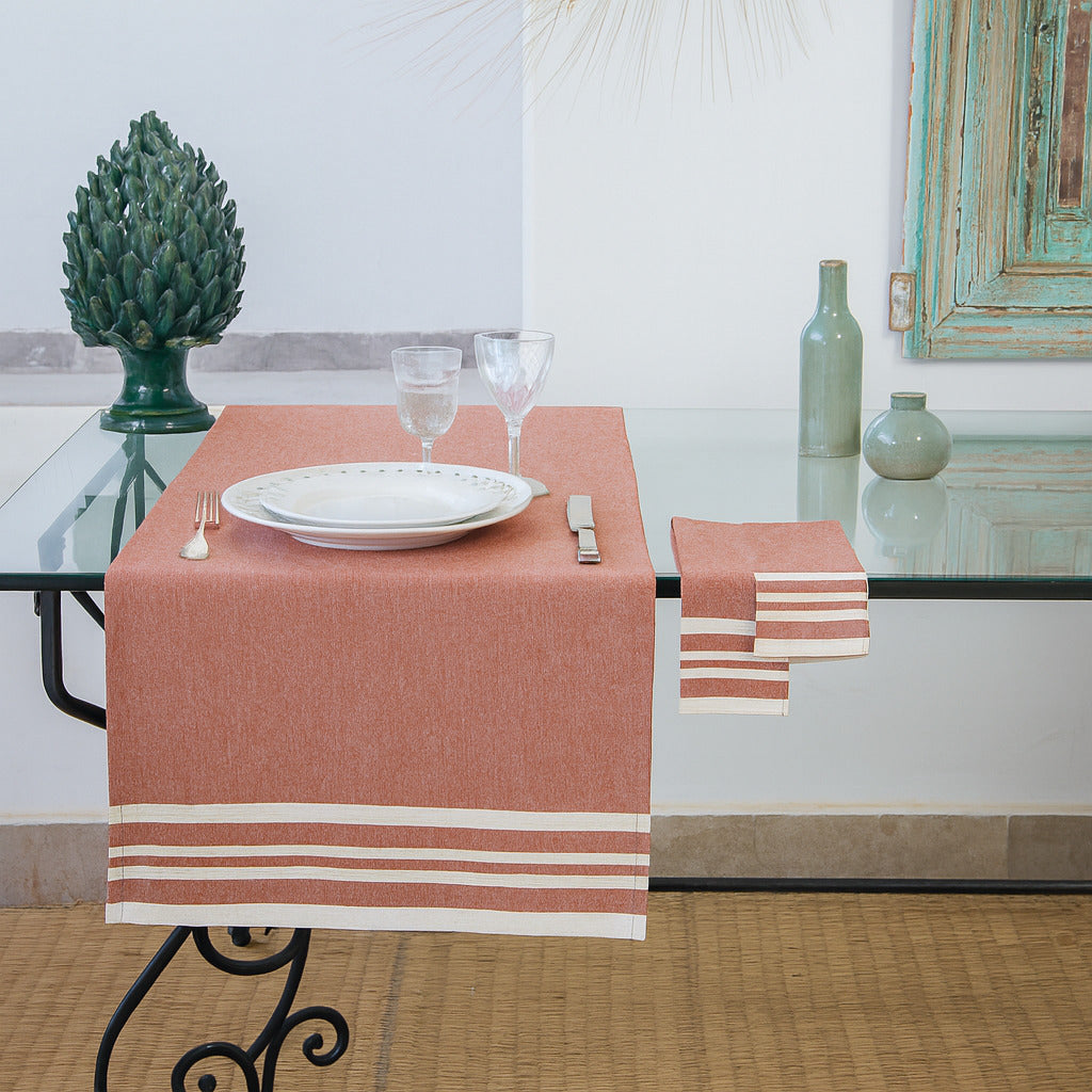 Élégant et d’un entretien aisé, notre iconique modèle MAHDIA est ici décliné en chemin de tables pour compléter nos nappes et serviettes de table de la même gamme.