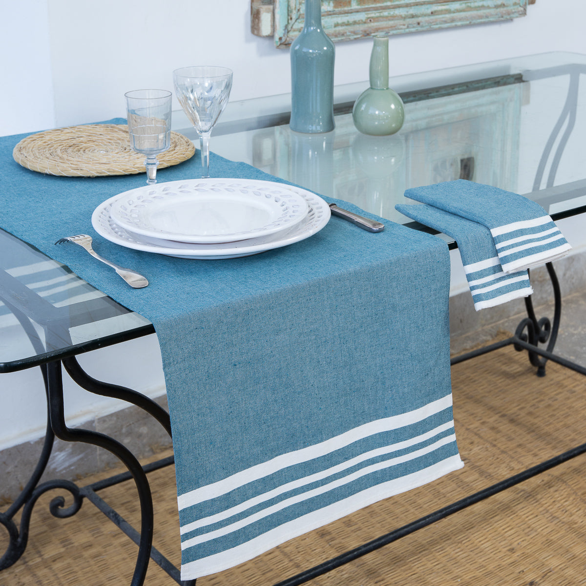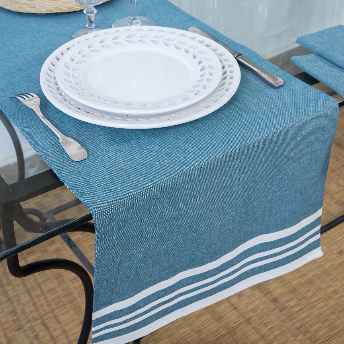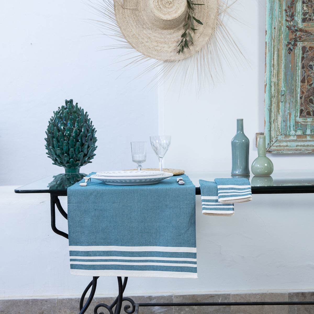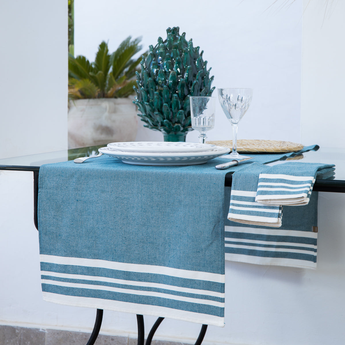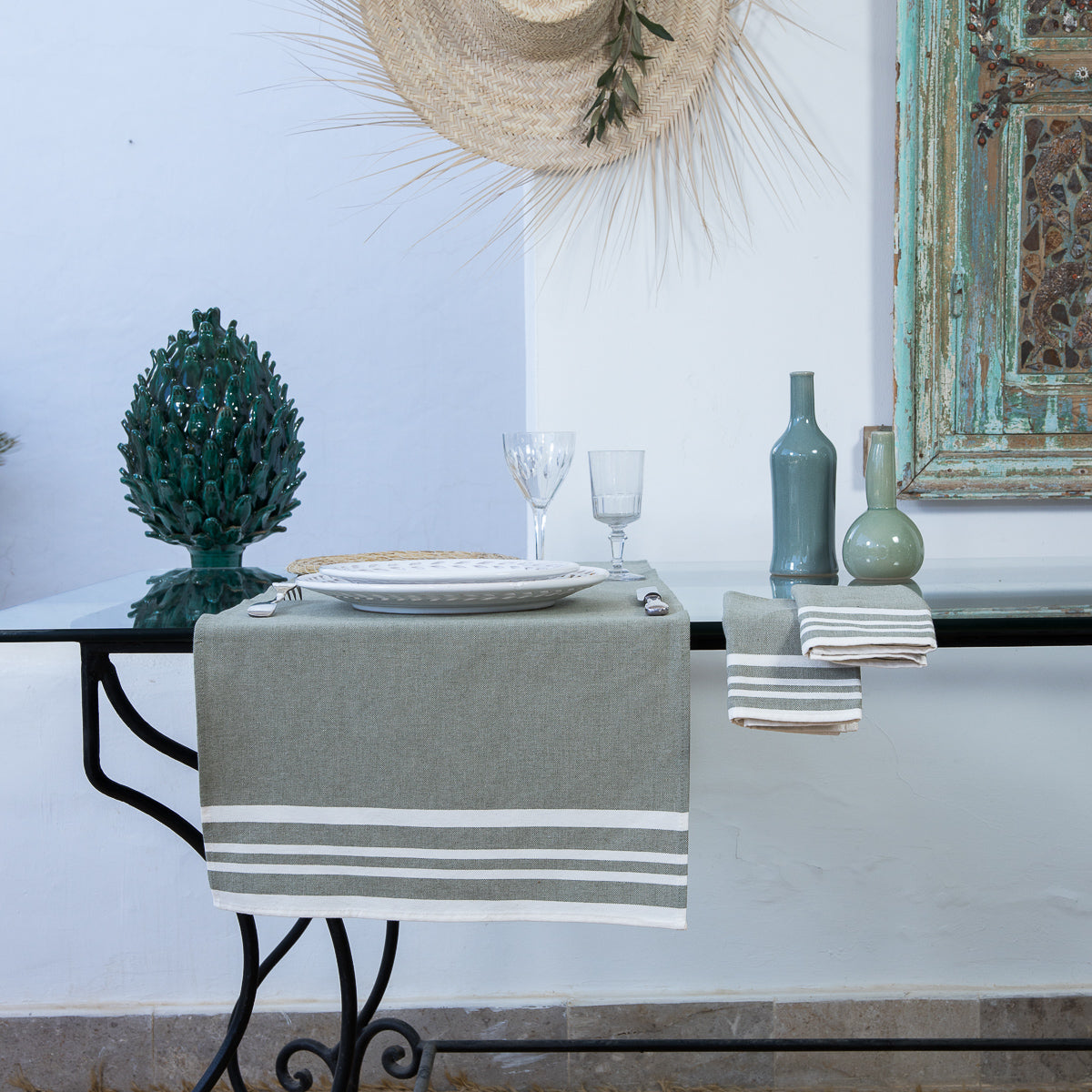 Élégant et d’un entretien aisé, notre iconique modèle MAHDIA est ici décliné en chemin de tables pour compléter nos nappes et serviettes de table de la même gamme.