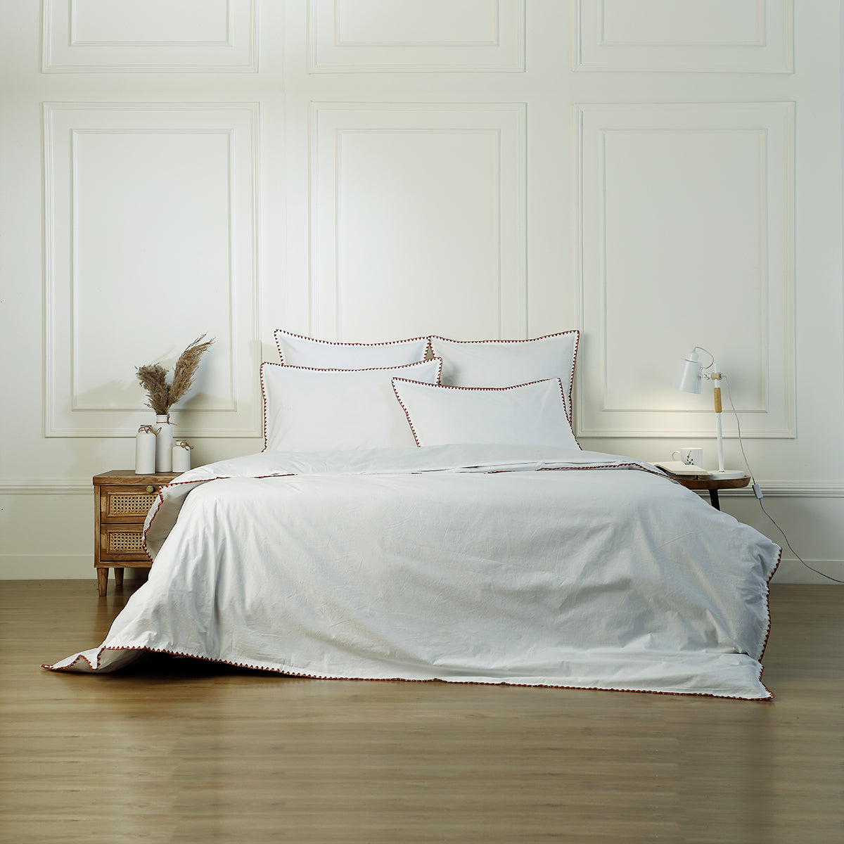 Notre drap plat brodé en percale de coton ZOÉ est robuste et d'un toucher fluide.