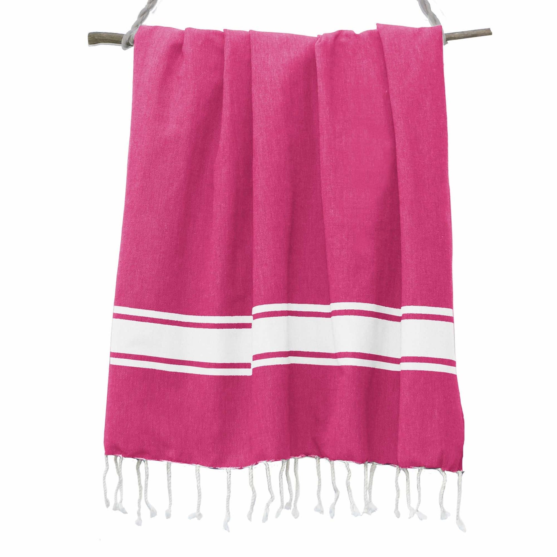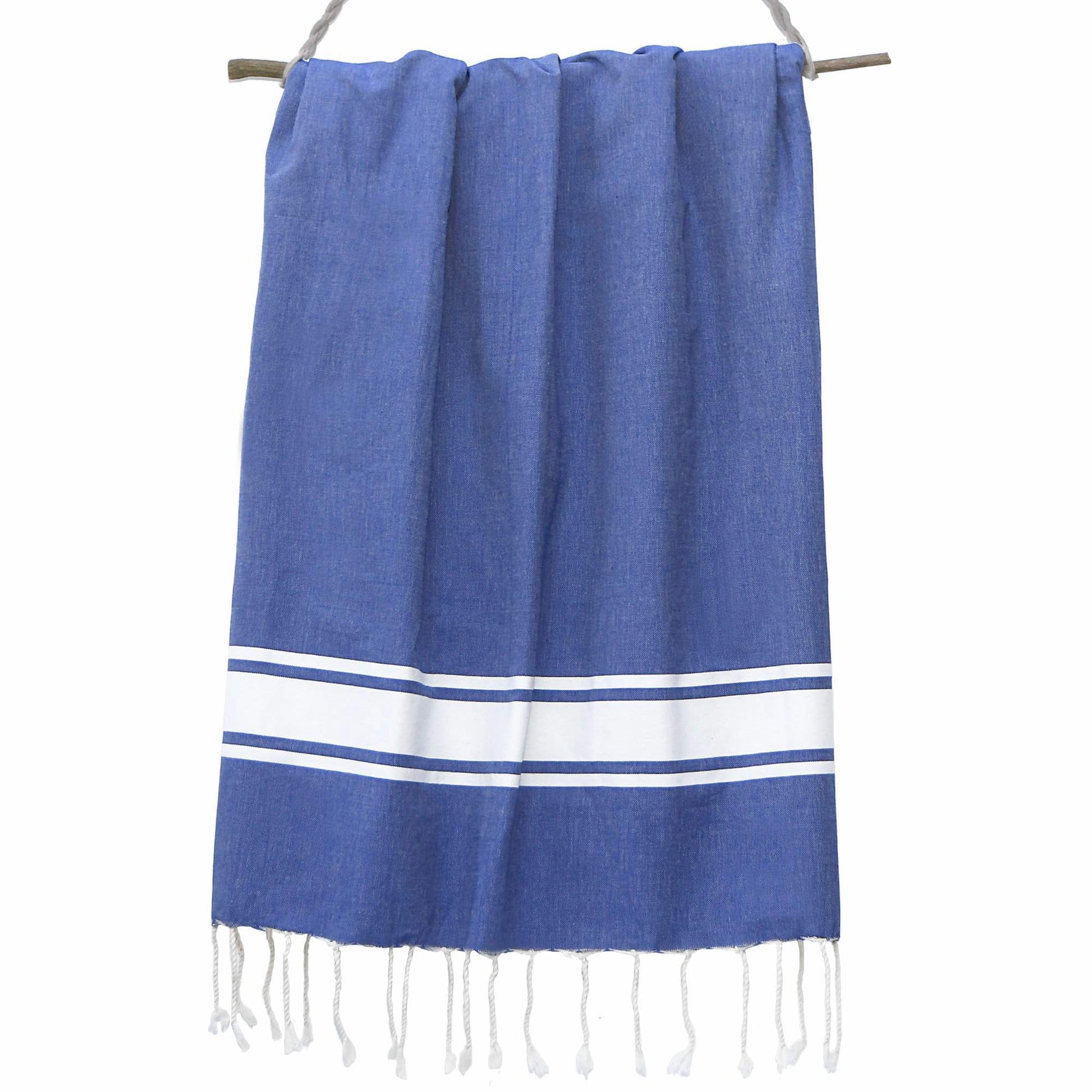 La Fouta incontournable coton MALIBU proposée par lot de 2 et déclinée dans de multiples coloris avec son élégante bande blanche se révélera aussi élégante sur un canapé qu'en bord de mer.