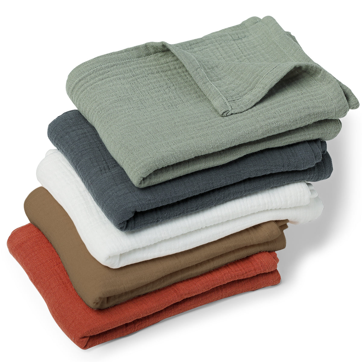 La collection CARLA en gaze de coton se distingue par sa douceur et son confort exceptionnel. Elle s'adoucira au fil des lavages, ajoutant à son charme unique. La double gaze de coton allie densité et légèreté, et ne nécessite pas de repassage.