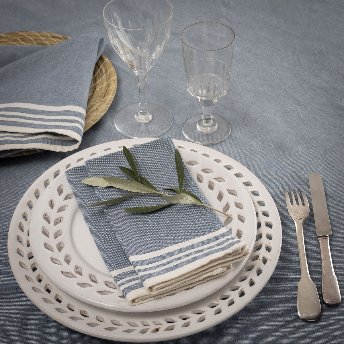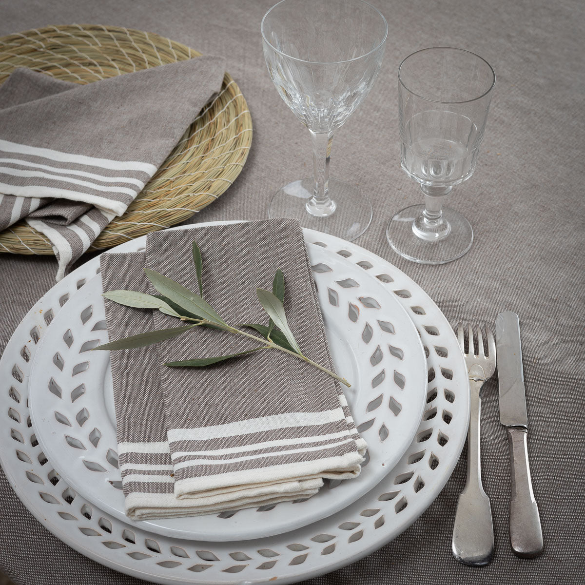 Élégant et d’un entretien aisé, notre iconique modèle MAHDIA est ici décliné en serviettes de tables pour compléter notre nappe rectangulaire du même design